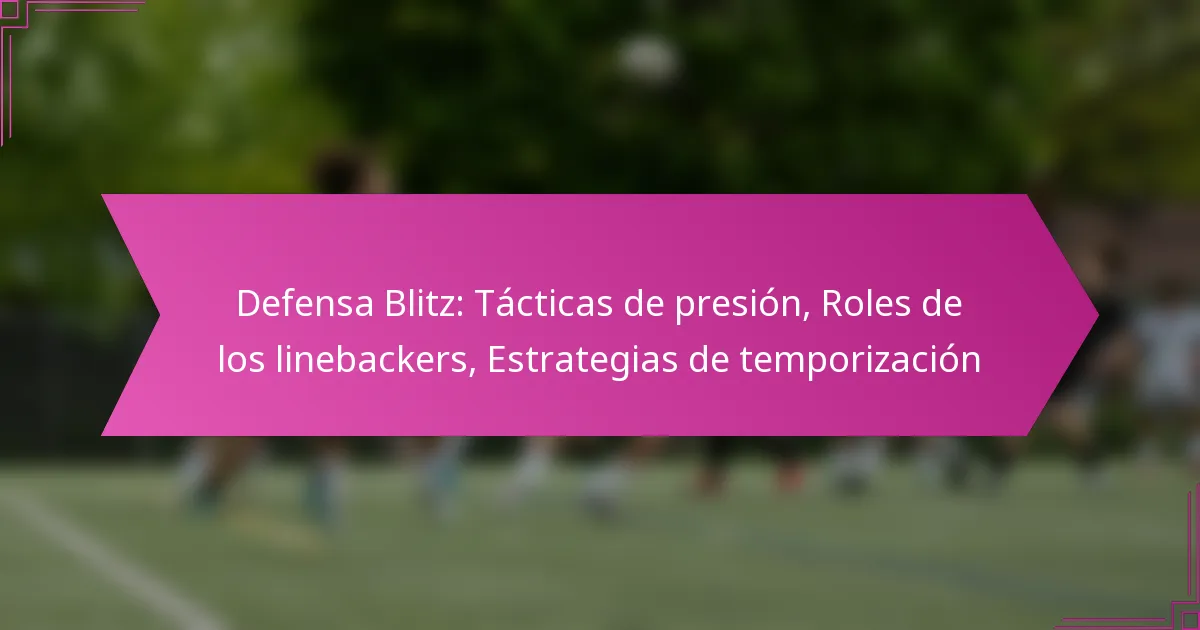 Las tácticas de presión en la defensa de blitz implican enviar jugadores adicionales para interrumpir la ofensiva, enfocándose principalmente en el mariscal de campo. Esta estrategia tiene como objetivo crear confusión y forzar decisiones rápidas, lo que puede llevar a errores y pérdidas de balón.