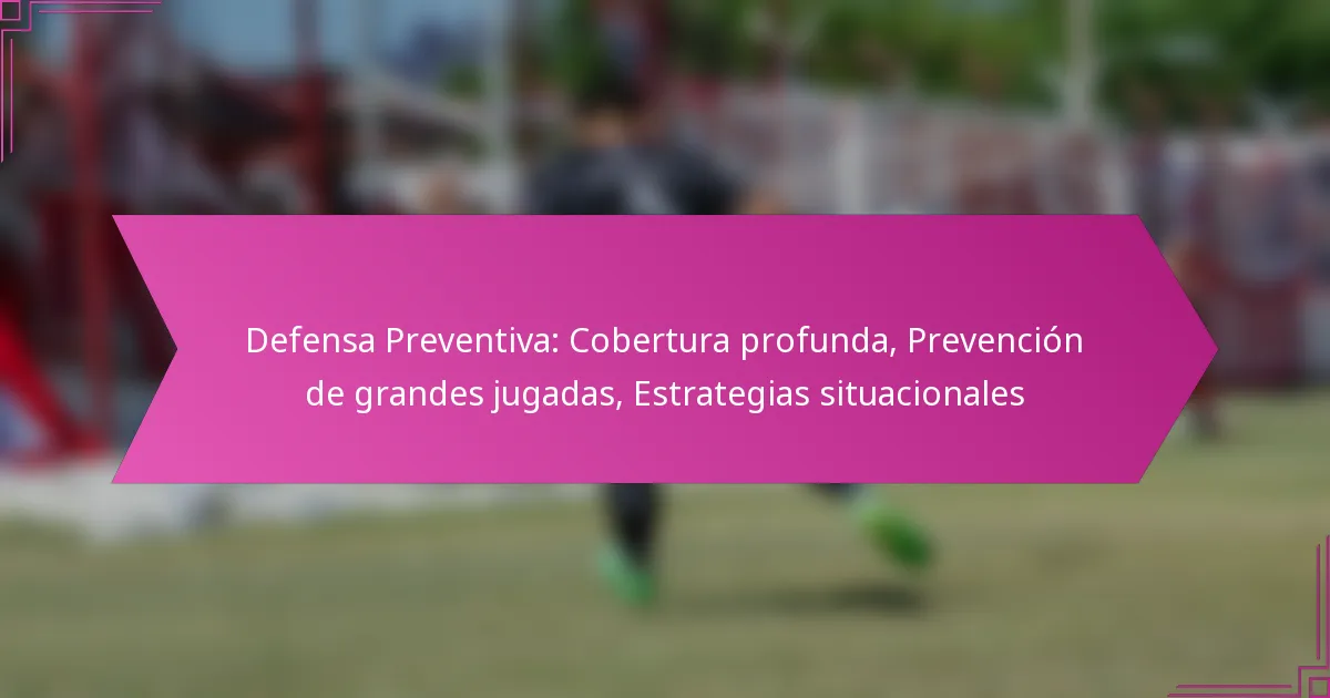 La defensa preventiva es un enfoque estratégico en el fútbol americano diseñado para minimizar el riesgo de grandes jugadas, particularmente en situaciones de final de partido. Se centra en la cobertura profunda y tiene como objetivo protegerse contra pases largos, permitiendo a los defensores mantener la jugada frente a ellos.
