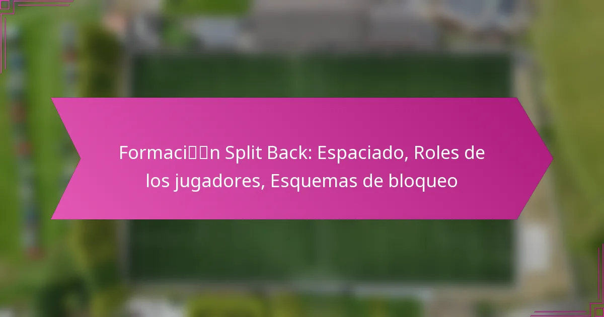 La formación de split back presenta una estructura de espaciado única que mejora la flexibilidad ofensiva y los roles de los jugadores. Esta alineación permite jugadas de carrera y pase efectivas al utilizar el espacio entre los corredores y la línea ofensiva.